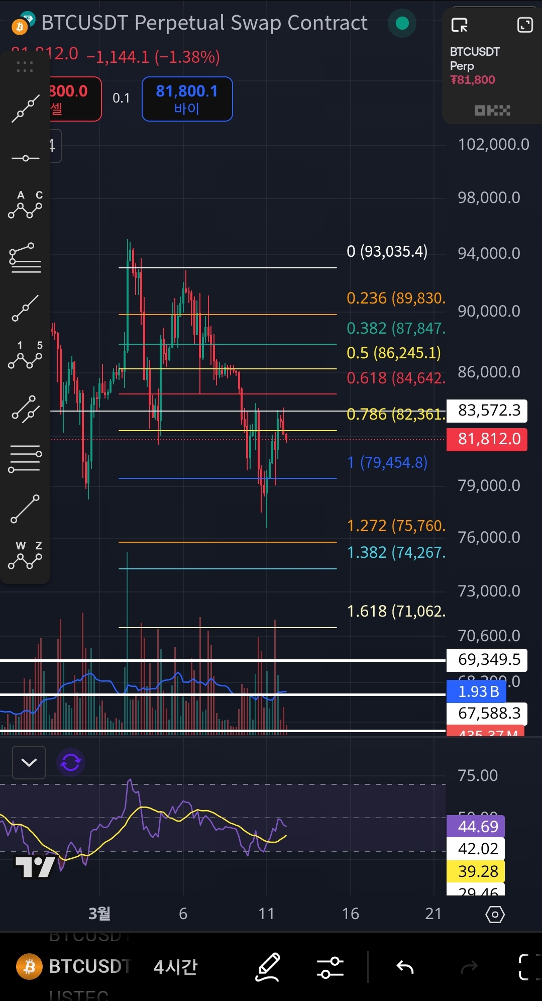 지금 비트코인은 82,361달러(0.786)~79,454달러(1)