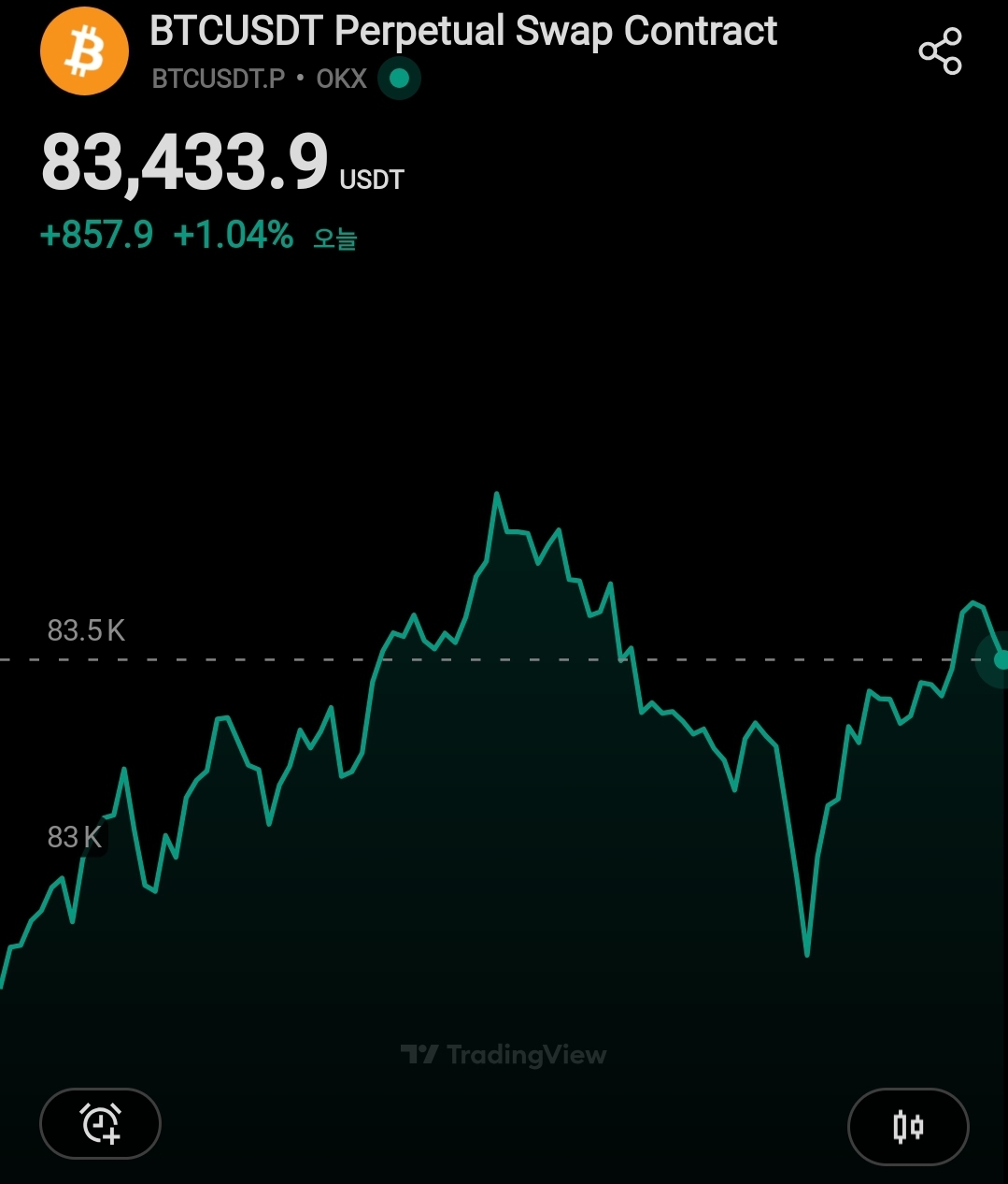 📌 현재 가격은 83,437~84,311 저항 구간 근처에서 횡보 중으로 보이며, 85,308 돌파 시 추가 상승 가능성이 있습니다.