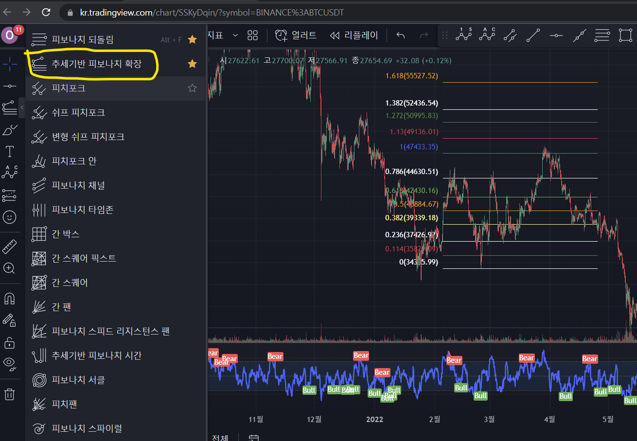 주식/비트코인의 저점과 고점을 알수있는 피보나치 확장 도구 손쉽게 알아보기 본문