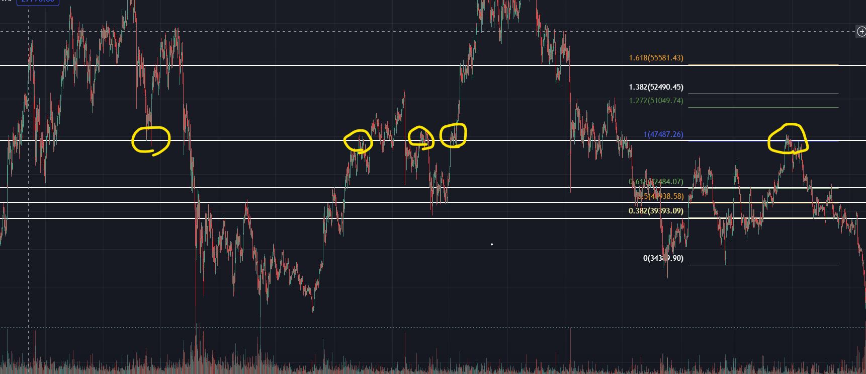 ※피보나치 되돌림에서 말씀드렸지만 피보나치 수치는 지지와 저항이 될 수 없습니다.